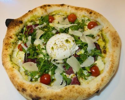 Base crème pesto , pastrami de bœuf , burrata ,...